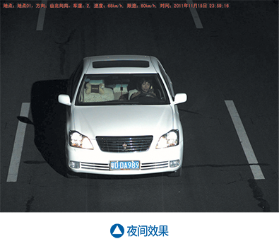 智能補光功能:采用特殊的濾光鏡頭、專門的成像控制策略和補光方式,同時安排了合理的設(shè)備布設(shè)方式,確保車身、車牌都清晰可辨。
